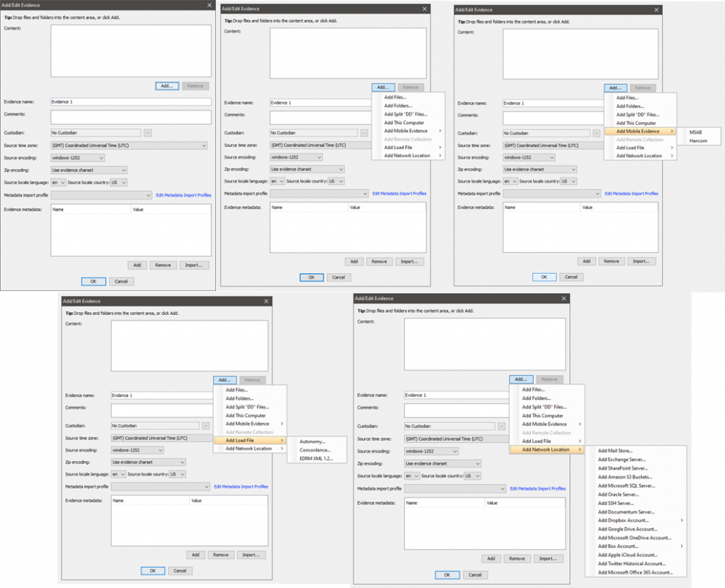 - Add Evidence – It is possible to enter multiple evidence sources either for one custodian or multiple sources for multiple custodians; each additional custodian will require a separate click of the “Add” evidence button shown below.
