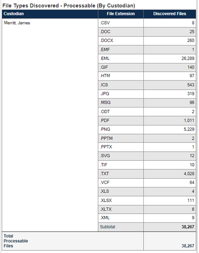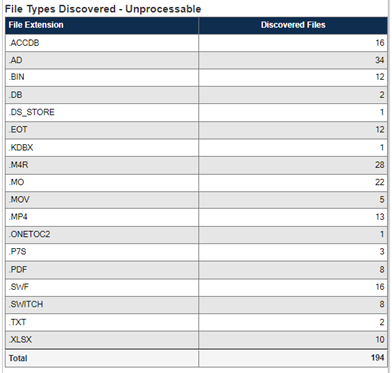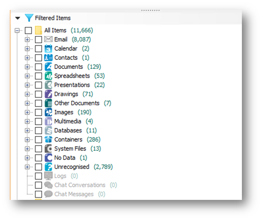 Nuix Workstation has a really clean breakdown of file types which can be used to build searches, cull the data set or for basic review of what a document contains.