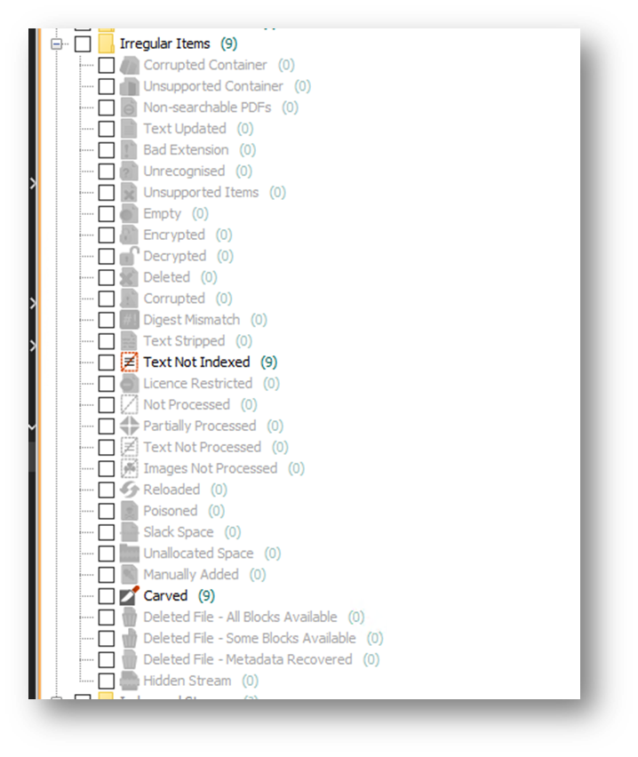 It is also very easy to see problem documents, such as encrypted, deleted, corrupted etc. Again, this is very clean and a great asset to Nuix Workstation.