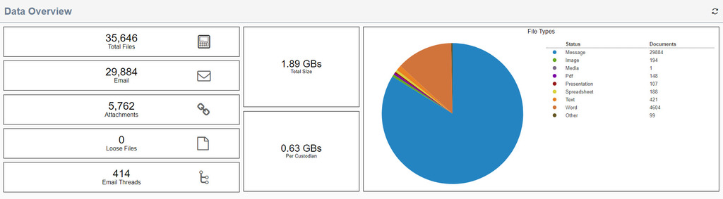 There is a really strong, clear and concise dashboard containing an insight as to what has been ingested into a Data Archive. The dashboard shows the following information: