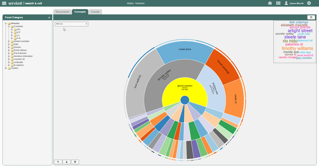 There are some very nice touches within the different sections of Servient, such as the summary of documents loaded into Review, the cluster wheel and the ability to move data into more than one matter.